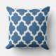 Navy Blue & White Ikat Quatrefoil Pattern Throw Pillow