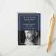 Navy blue prayer card for a funeral where you can add a photo of your loved one. On the back you can write a prayer against a plain white background with a thin blue frame.