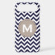 Navy Blue White Monogram Chevron Pattern Case-Mate iPhone Case