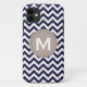 Navy Blue White Monogram Chevron Pattern Case-Mate iPhone Case
