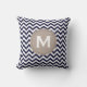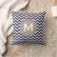 Navy Blue White Monogram Chevron Pattern Throw Pillow