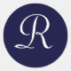 Navy Blue & White Monogram Initial Seals/Stickers. "R" MY ORIGINAL ARTWORK at zazzle.com/virginia5050*, BIRTHDAY GIFT STORE at zazzle.com/BirthdayGiftStore, and INTERNATIONAL GIFTS at zazzle.com/InternationalGifts*