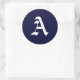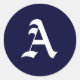 Navy Blue & White Monogram Initial Seals/Stickers. "A" MY ORIGINAL ARTWORK at zazzle.com/virginia5050*, BIRTHDAY GIFT STORE at zazzle.com/BirthdayGiftStore, and INTERNATIONAL GIFTS at zazzle.com/InternationalGifts*