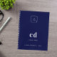 A classic navy blue background and white text. Personalize and add your logo, monogram initials, name and a title. Your logo both on the front and the back. Space for your website address on the back.