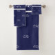 Navy blue white monogram initials pattern name bath towel set