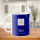A classic navy blue background. Personalize and add your business logo (3), a name and monogram initials (3).