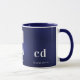 A navy blue background. The blue colour is uneven. Personalize and add your business logo, a name and monogram initials (x3). The name is written in white with modern block letters.