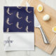Navy Blue White Monogram name Trout pattern Kitchen Towel