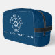 Personalize your toiletry bag with your name and the yacht name in white on a navy blue background.