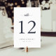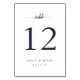 Simple and chic table number cards in classic black and white make an elegant statement at your wedding reception. Personalize with each table number, your names, and wedding date in rich navy blue lettering with calligraphy script accents. Design repeats on reverse side. Coordinates with our Ampersand Monogram wedding invitation suite.