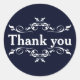 Navy Blue & White Personalized Thank You Classic Round Sticker