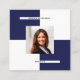 A classic navy blue and white colour block background. Personalize and add your profile photo and text on the front.