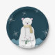 Adorable paper plates with an illustration of a little polar bear with its protective mom by it on a dark blue background with white snowflakes. Great for baby showers, polar bear lovers and party celebrations with kids. The image looks like is in three dimensions but it's just a print. Illustrated and designed by Patricia Alvarez.