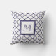 Navy Blue, White Quatrefoil | Your Monogram Throw Pillow