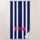 Navy Blue White Stripe Personalized Monogram Beach Towel