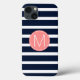 Navy Blue & White Stripe with Coral Monogram Case-Mate iPhone Case