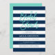 Navy Blue & White Stripes Turquoise Bridal Shower Invitation