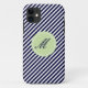 Navy Blue & White Stripes w Monogram iPhone 5 Case