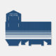Personalized wedding favour box. Navy blue and white stripes. Custom thank you message from bride and groom. Cute polkadot print with elegant white ribbon bow. Customizable background colour. Nautical maitime theme design.