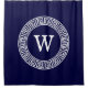 Navy Blue Wht Greek Key Rnd Frame Initial Monogram