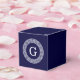 Navy Blue Wht Greek Key Rnd Frame Initial Monogram Favor Box
