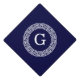 Navy Blue Wht Greek Key Rnd Frame Initial Monogram Graduation Cap Topper