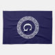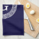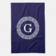 Navy Blue Wht Greek Key Rnd Frame Initial Monogram Kitchen Towel