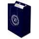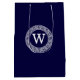 Navy Blue Wht Greek Key Rnd Frame Initial Monogram Medium Gift Bag