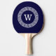 Navy Blue Wht Greek Key Rnd Frame Initial Monogram Ping Pong Paddle