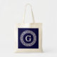 Navy Blue Wht Greek Key Rnd Frame Initial Monogram Tote Bag