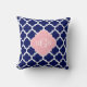 Navy Blue Wht Moroccan #5 Pink 3 Initial Monogram Throw Pillow