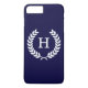 Navy Blue Wht Wheat Laurel Wreath Initial Monogram Case-Mate iPhone Case