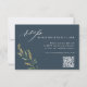 Navy Blue Wildflower Elegant Wedding QR Code RSVP Card