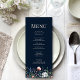 Navy Blue Wildflower Meadow Wedding Menu Card