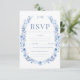 Modern romantic navy blue wildflowers, tiny flower wreath botanical summer garden or barn wedding response RSVP cards.