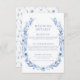 Elegant romantic navy blue wildflower wreath, tiny flower garden, barn or ranch wedding details card.