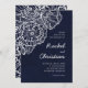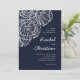 Invitation Bleu marine avec ligne blanche art fleurs de coque