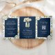 Navy Blue Wood Daisies Mason Jar QR Code Wedding Tri-Fold Invitation