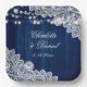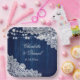 Navy Blue Wood Floral Lace String Lights Wedding Paper Plate