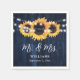 Decorate your navy blue rustic wedding party with these floral wedding paper napkins featuring sunflowers and string lights on a rustic wood background. Matching items available.