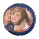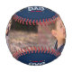 “World’s greatest Dad.” Let Dad know what you really think of him. Cool, modern white and red typography and a black banner with multicolored dots overlay a navy blue background. Add two photos of your choice and customize the copy for the perfect, personalized keepsake baseball that he’ll treasure always. Makes a great Dad gift for Father’s Day or his birthday!