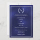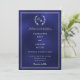 Navy blue wreath monogrammed simple wedding invitation