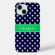 Navy Blue Wt Polka Dot Emerald Green Name Monogram Case-Mate iPhone Case