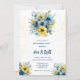 Navy Blue Yellow Floral Gold Engagement Party Invitation