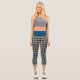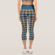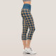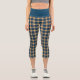 Navy Blue Yellow Madras Plaid Pattern Capri Leggings