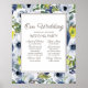 Navy blue, yellow, and white watercolor floral wedding party poster. Add the names of your officiant and bridal party. Contact us for help with customization and matching products.