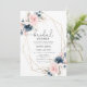 Navy blush floral geometric frame bridal shower Invitation