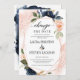 Navy Blush Floral Geometric Frame Change the Date Invitation