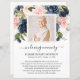 Navy blue and blush pink Photo Sympathy Funeral Prayer Card This design features watercolor floral on a prayer card that can be customized with your text and photo.