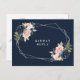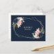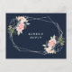 lovely watercolor navy blue and blush flowers design with a geometric silver frame on wedding RSVP cards. You can change the colour and text to match your theme.